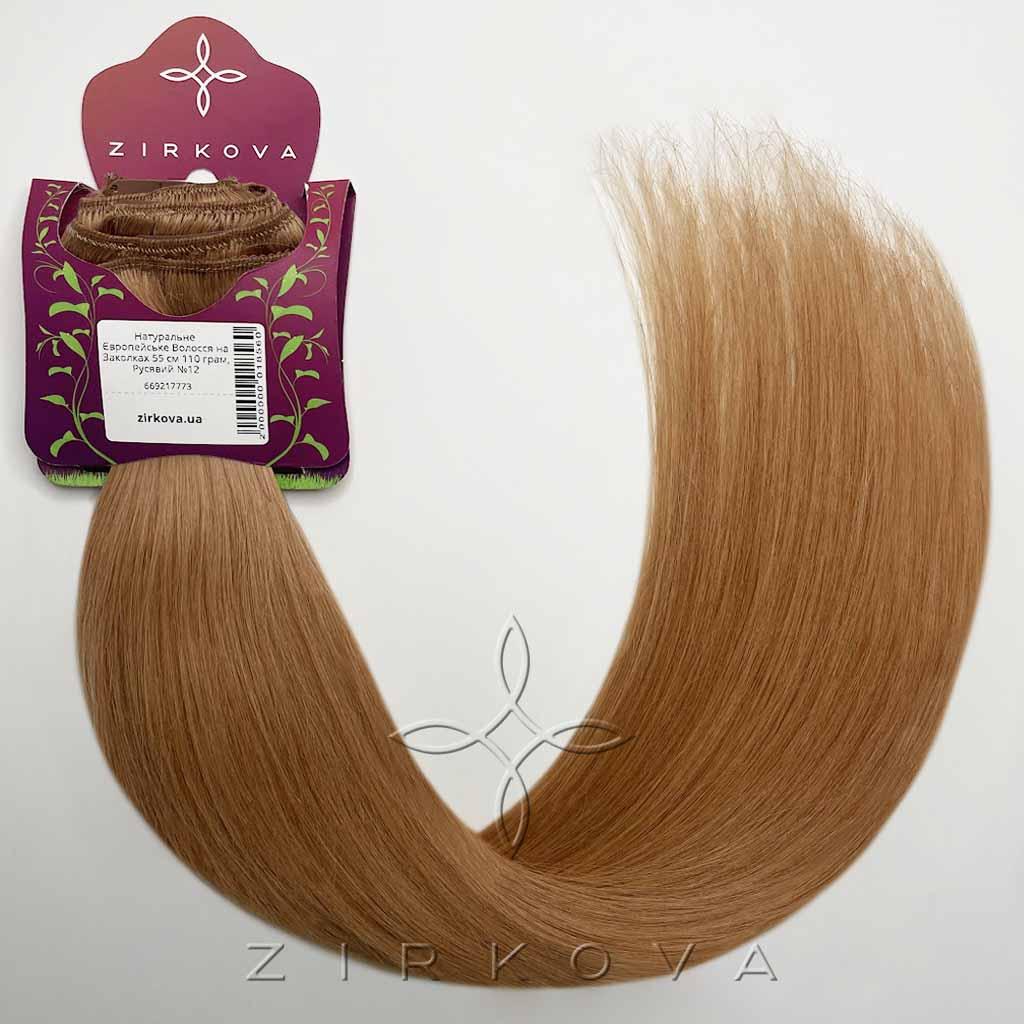 Натуральне Європейське Волосся на Заколках 55 см 110 грам, Русявий №12